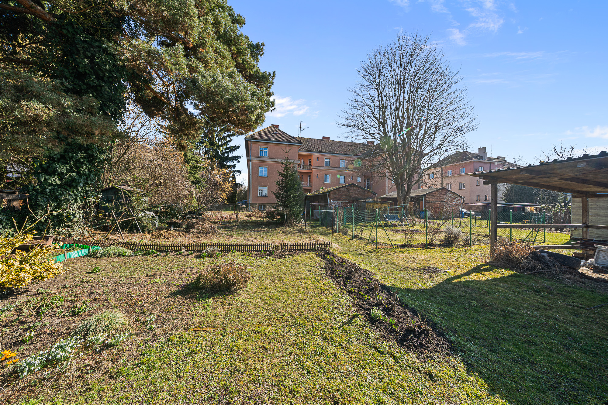 Velkým benefitem je vlastní zahrada o velikosti přibližně 10 × 10 metrů. Získáte tak prostor na posezení, grilování, záhonky nebo malé dětské hřiště.