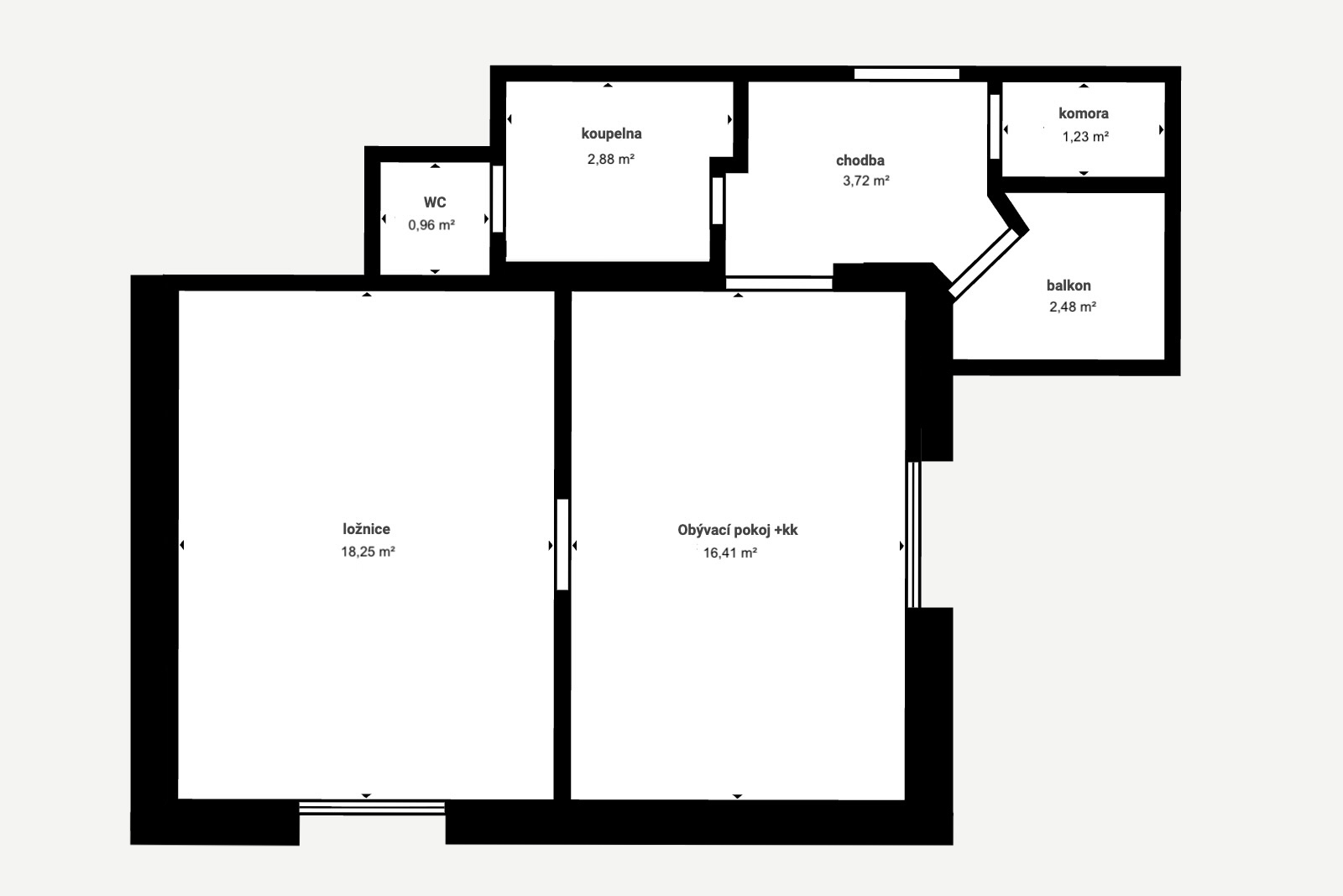 Dispozice 2+kk je ideální pro jednotlivce, pár nebo jako investice k pronájmu.