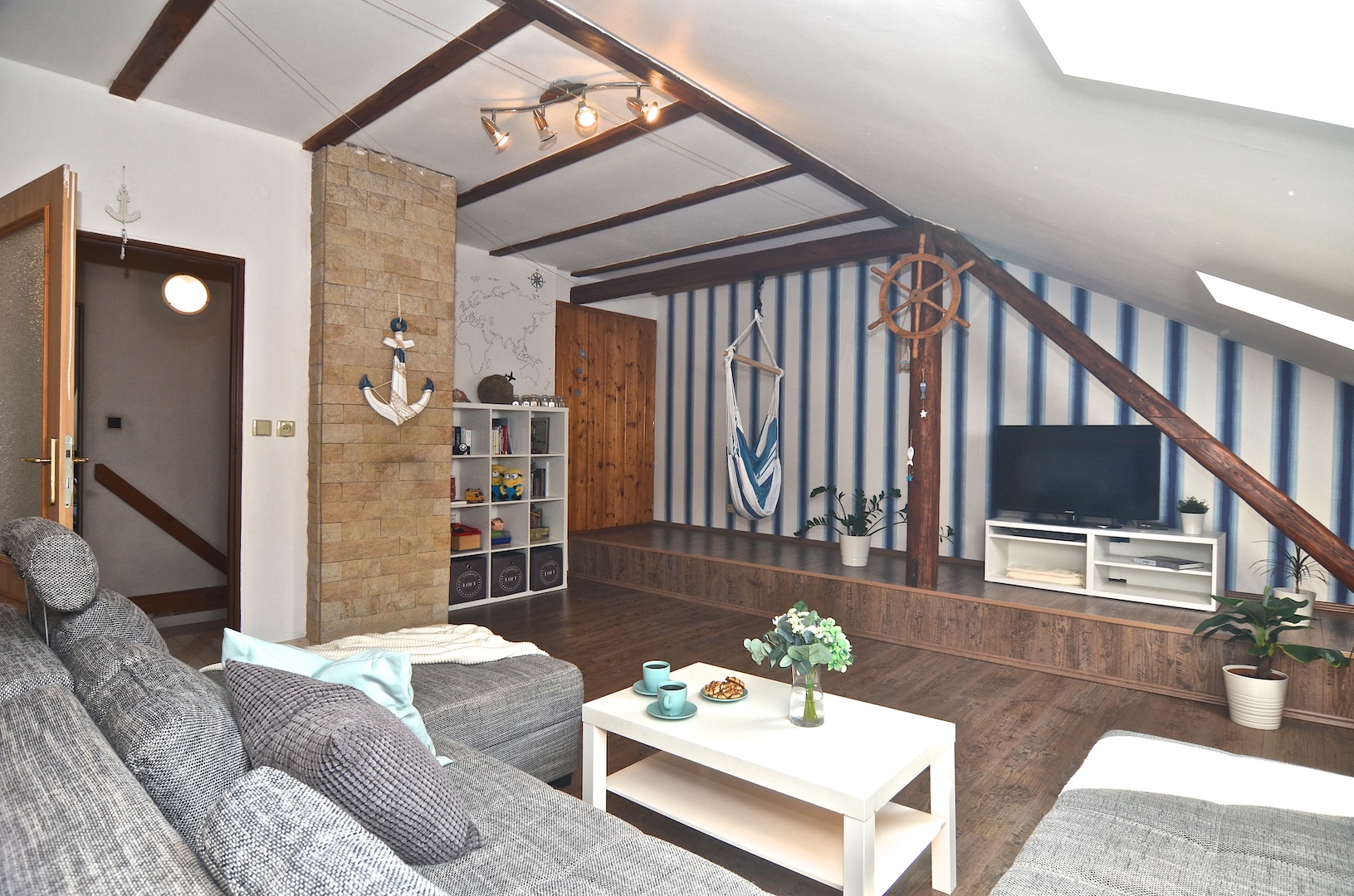 Exkluzivní příležitost vlastnit zrekonstruovaný loftový byt v Trutnově o dispozici 4+1 s jedinečnou terasou. Je ve 2. patře zděného domu, který se nachází 10 min. pěšky od Krakonošova náměstí.