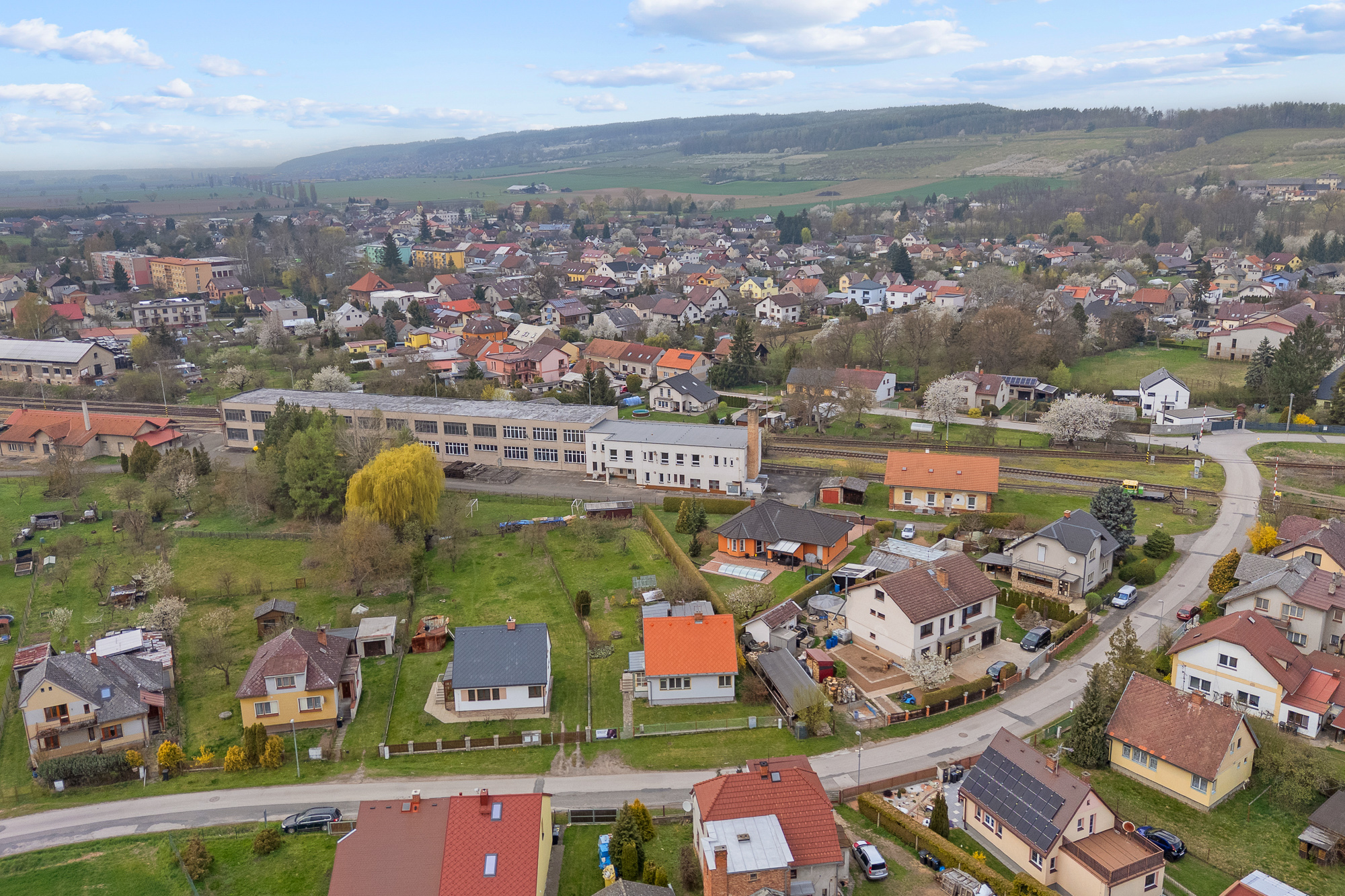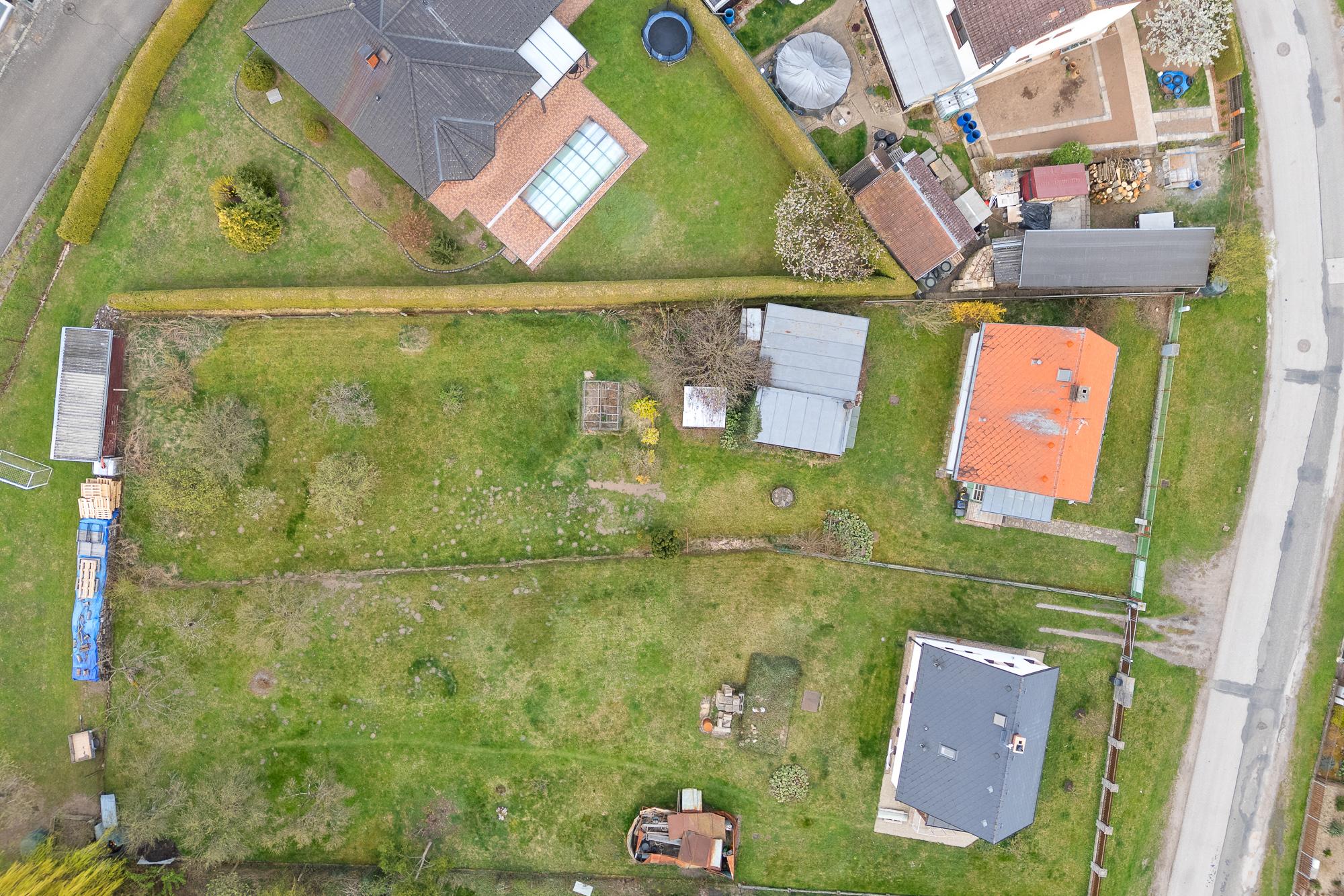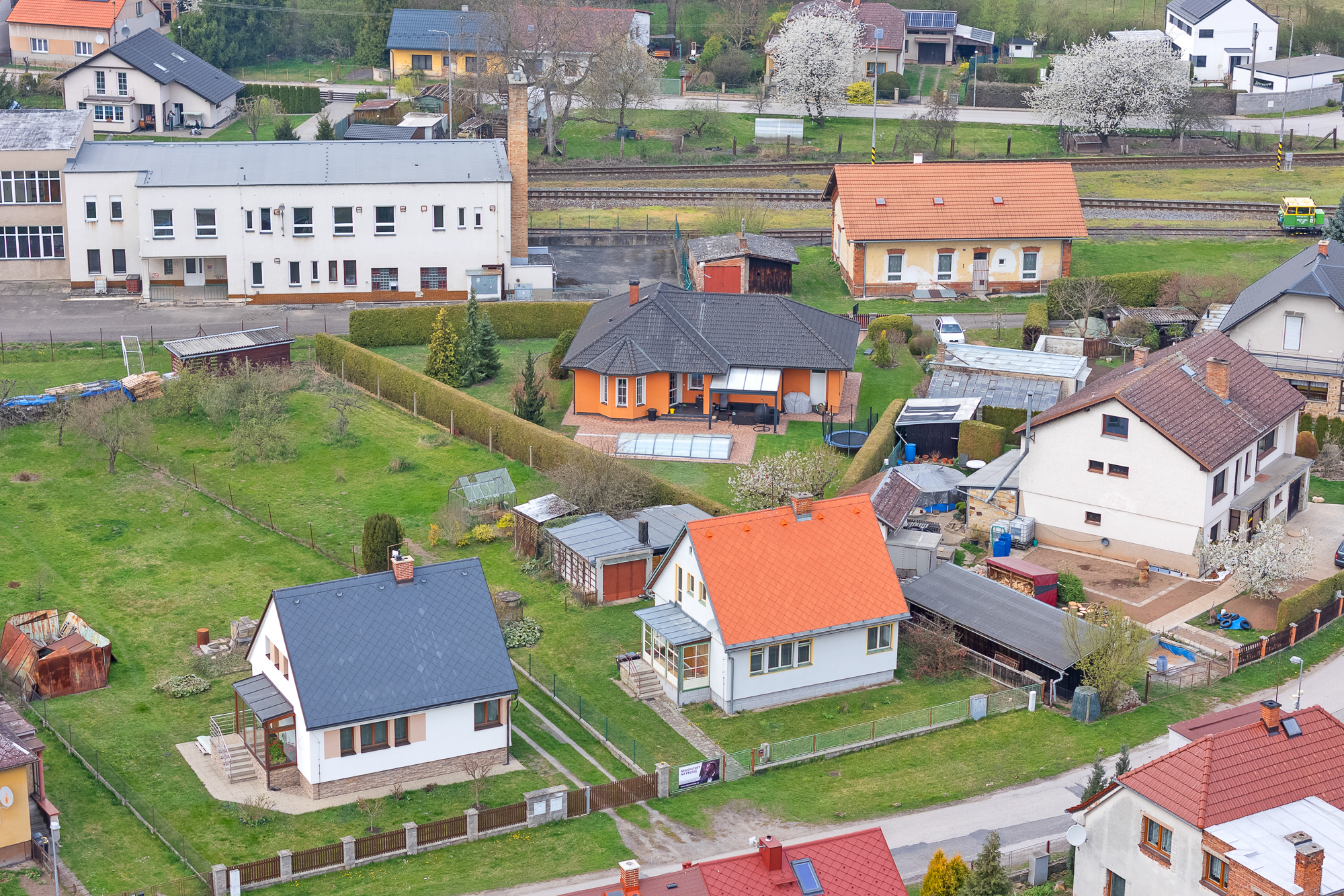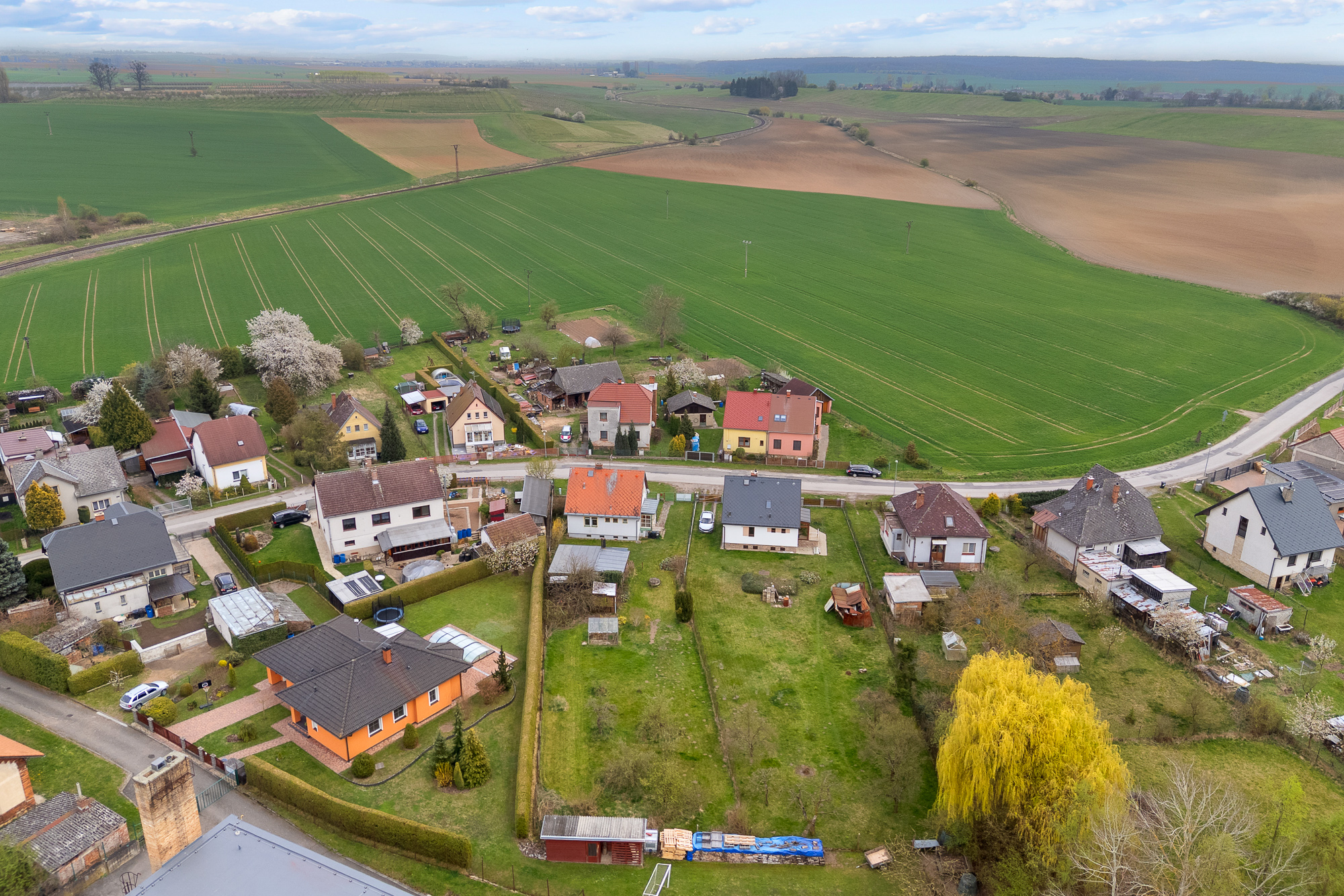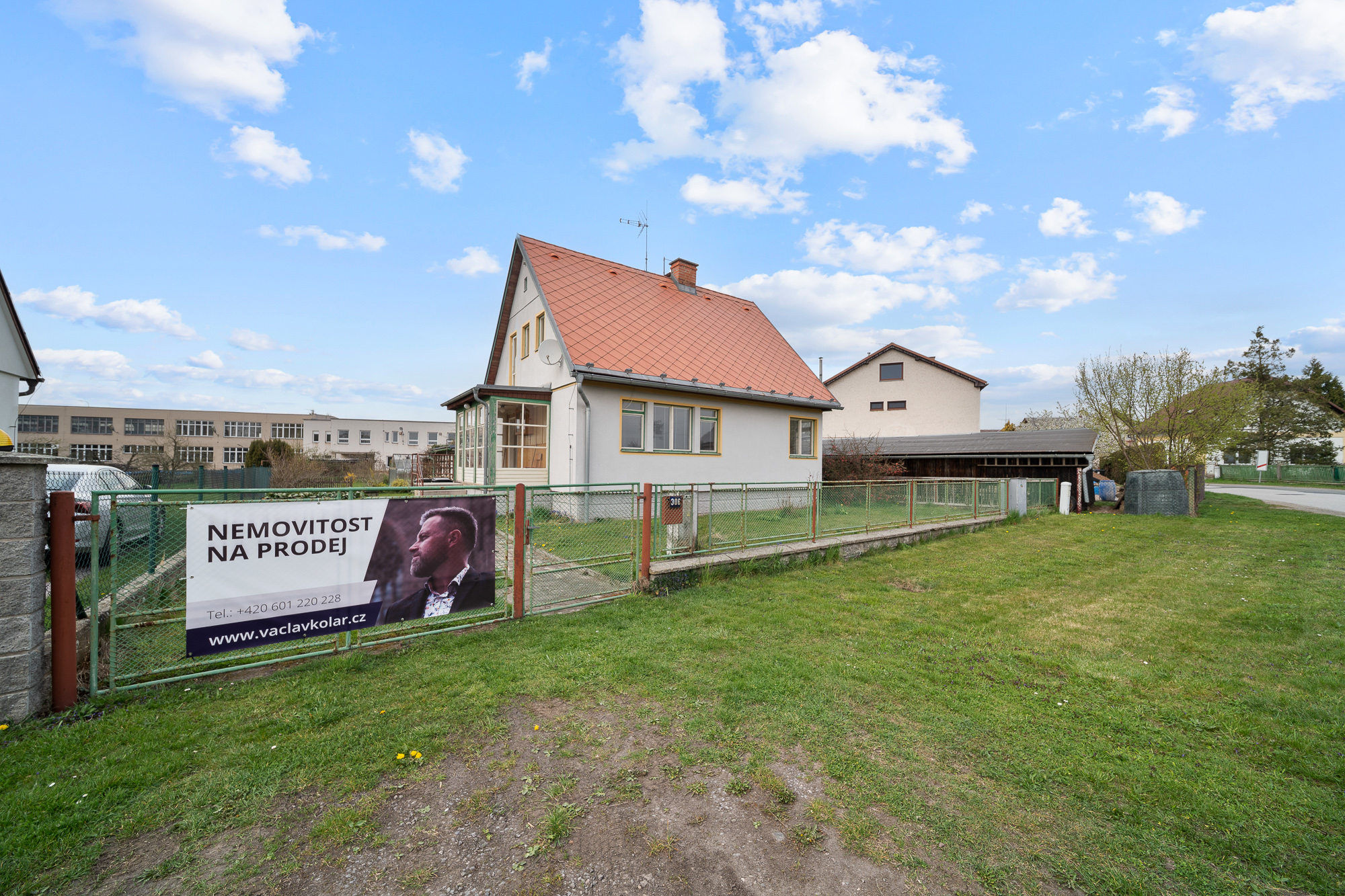 Pozemek má obdélníkový tvar, je oplocený, udržovaný a osázený ovocnými stromy. Najdete zde také skleník, zděnou garáž, kůlnu a studnu s užitkovou vodou vhodnou k zalévání.