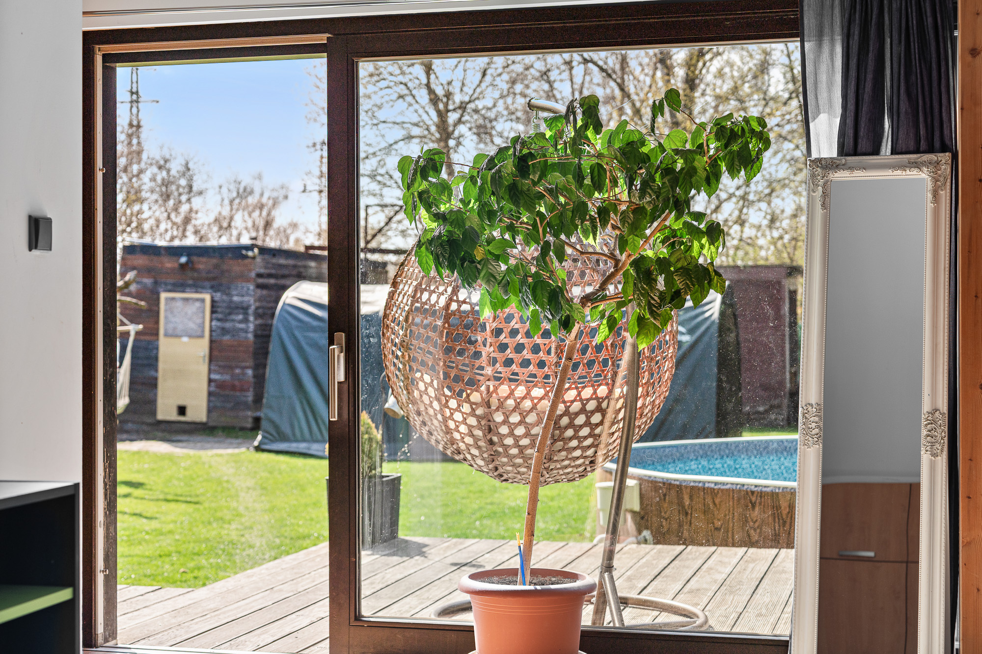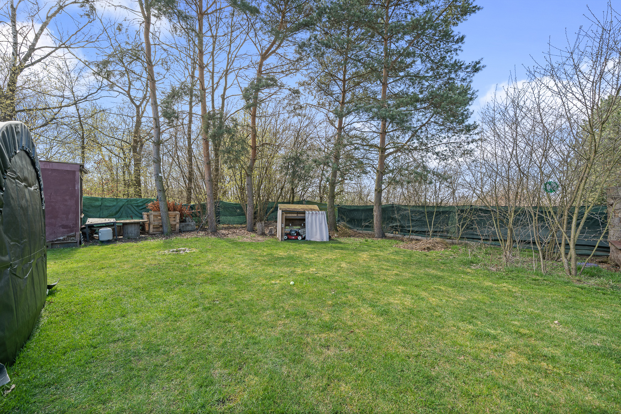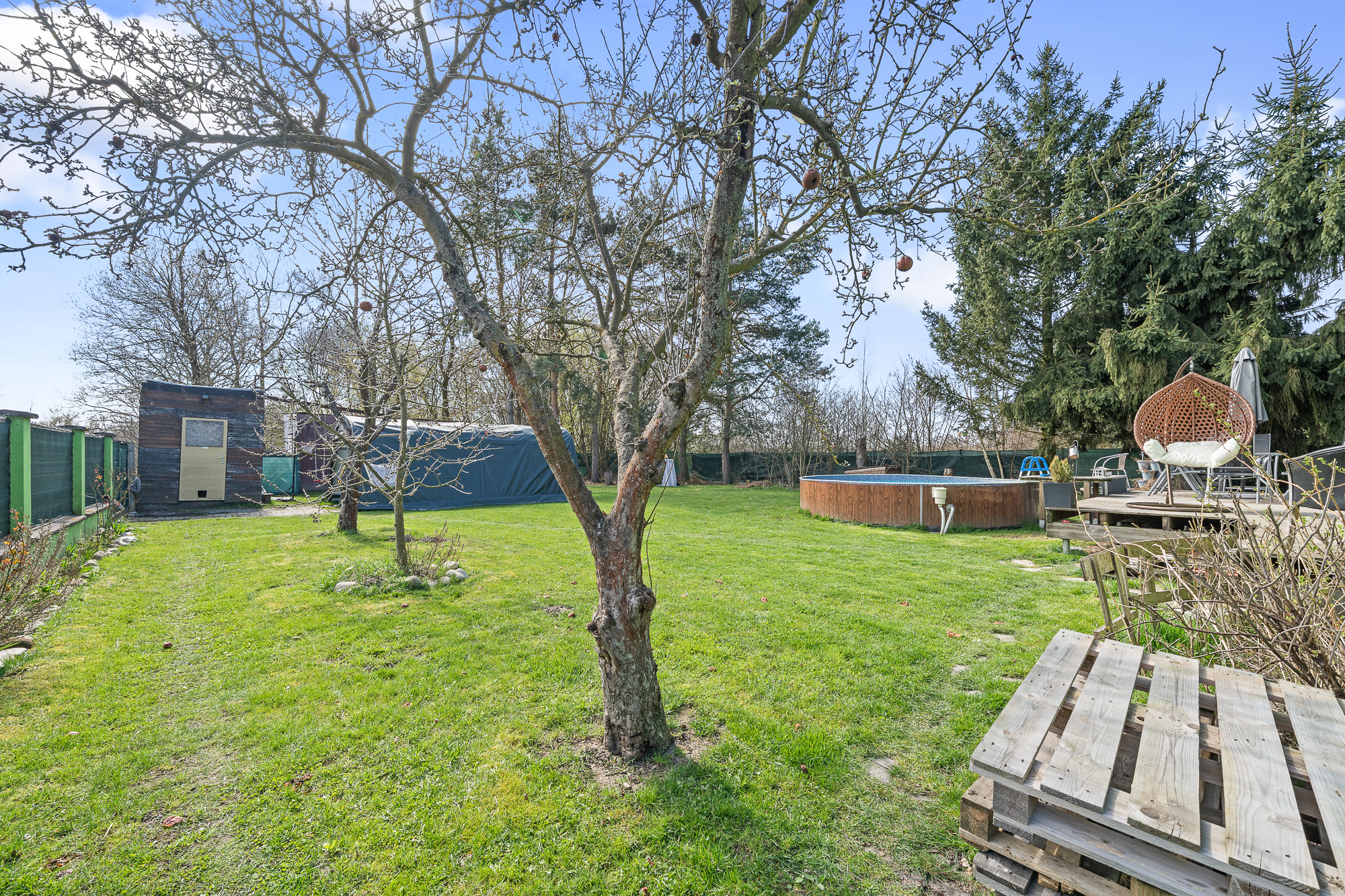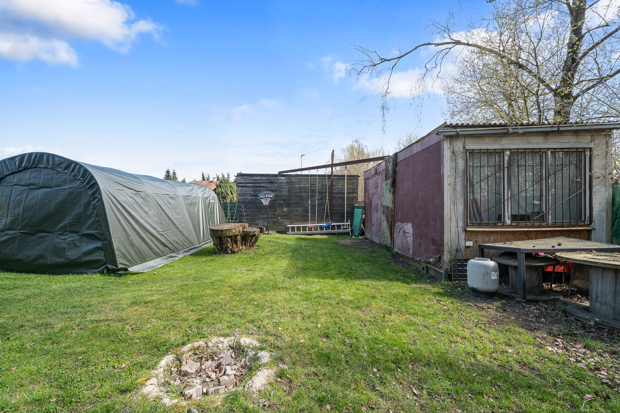 Před terasou se nachází bazén, na zahradě dále nechybí ani skleník a dvě stavební buňky, které můžete využít například jako sklad nebo dílnu.