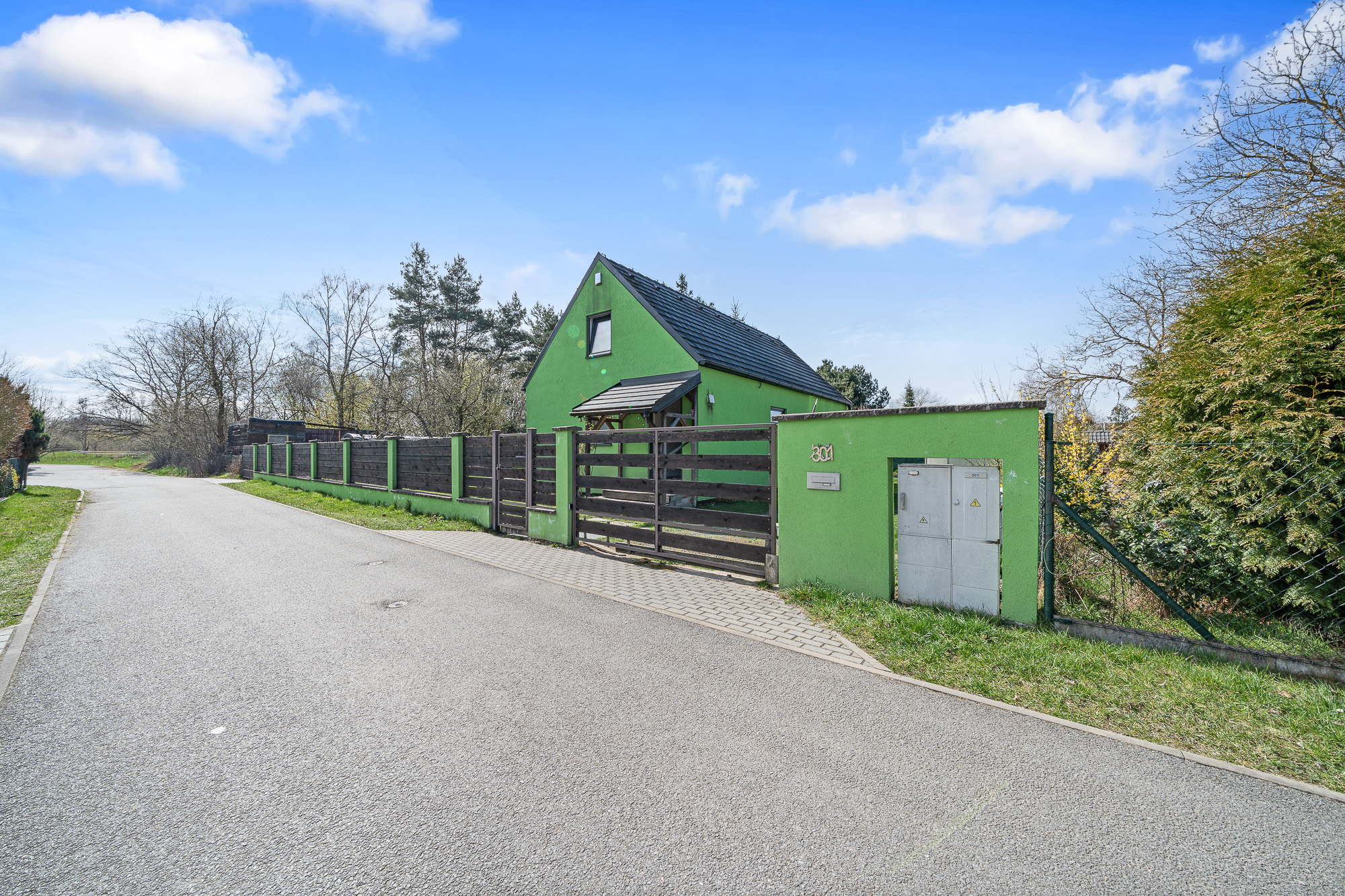 Jedná se o dřevostavbu z roku 2016, která stojí na pozemku o velikosti 923 m² ve slepé ulici v obci Srnojedy.